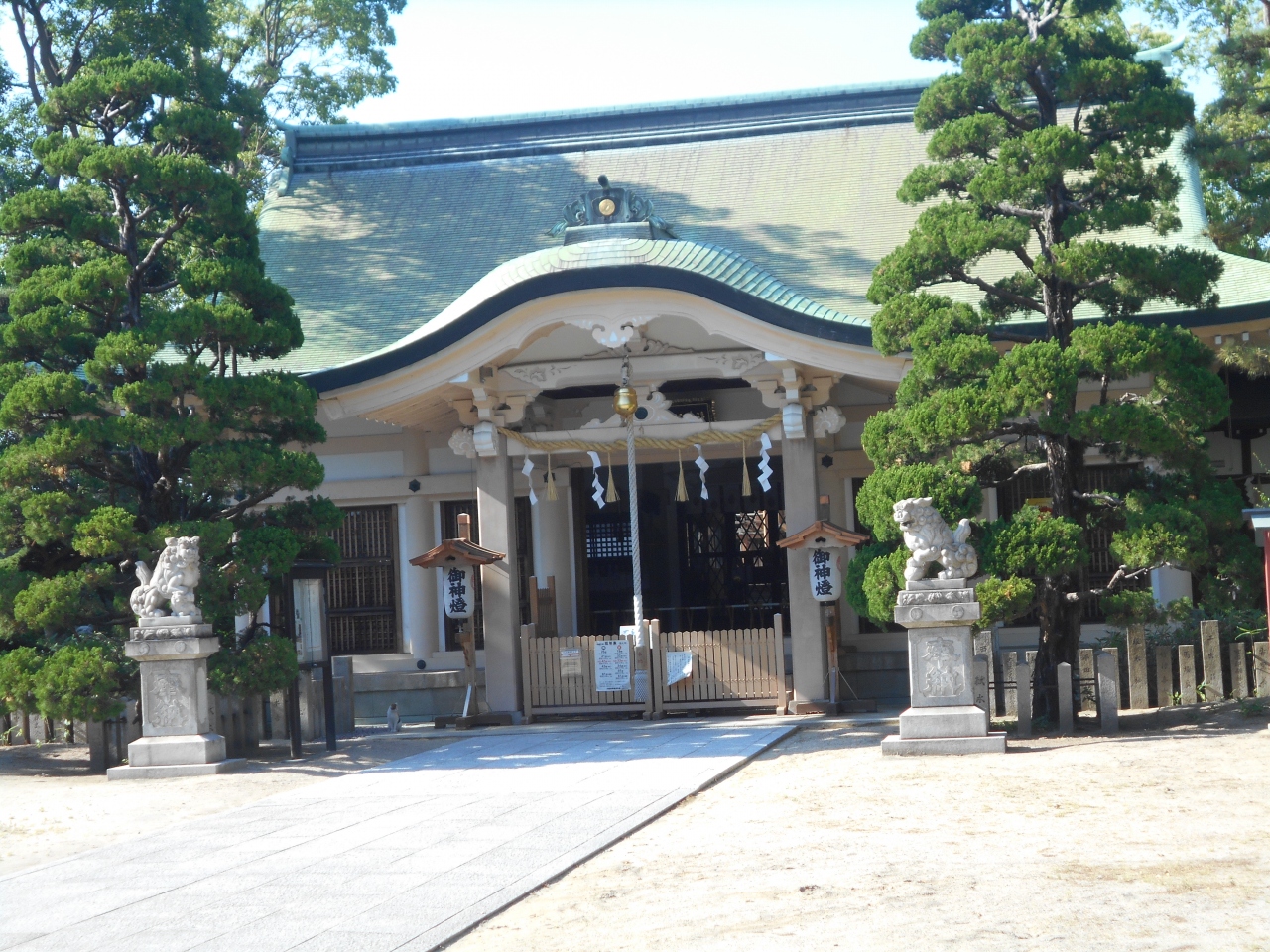 天王寺七坂の愛染坂沿いに鎮座する神社で四天王寺七宮の一つ。五穀豊穣の豊受大神を主祭神として祀り四天王寺の鎮守として聖徳太子が建立したと伝わります。鳥居をくぐると静かな境内で本殿や神楽殿、一対の狛虎が見所です。