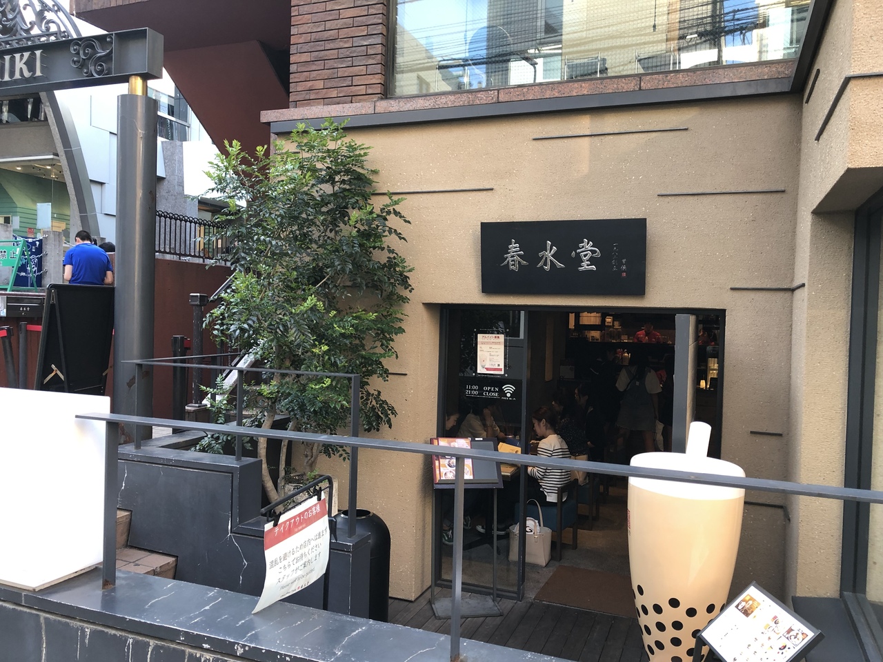 表参道というより、中にちょっと入った神宮前にあるタピオカミルクティーの有名店、春水堂です。雰囲気のあるエントランスでつねに行列しているお店。が、今回は平日の夕方だったこともあり、なんと待ち時間なしで、店内に入る事が出来ました。このあたりもタピオカ店が沢山出来ているので、人が分散しているのでしょうか。