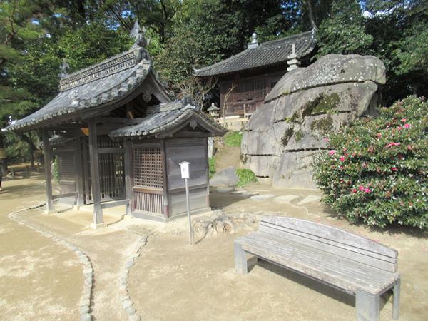花崗岩を36個に割って運び、もとの姿に組み上げたという烏帽子岩の巨大な姿が目を引きました。