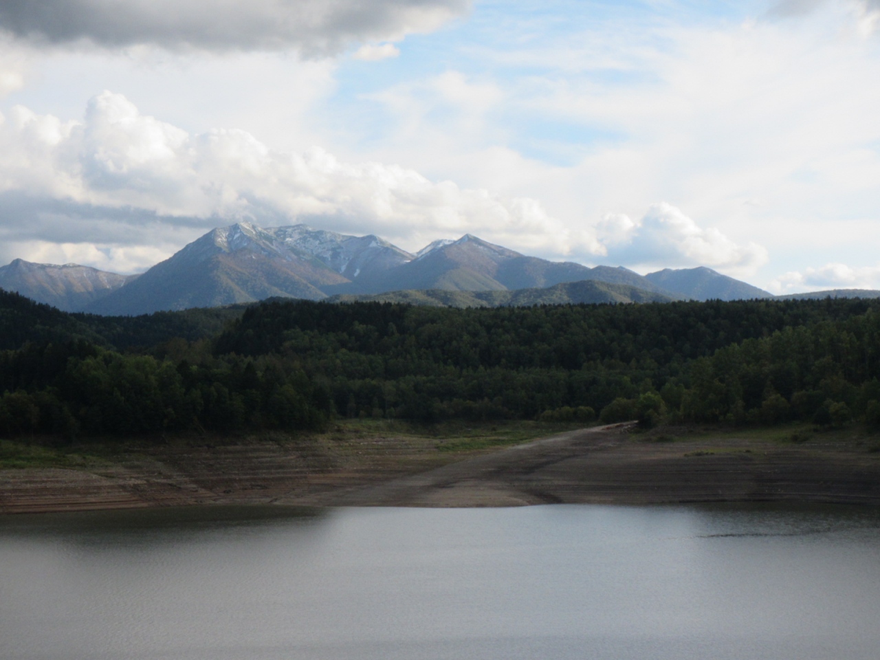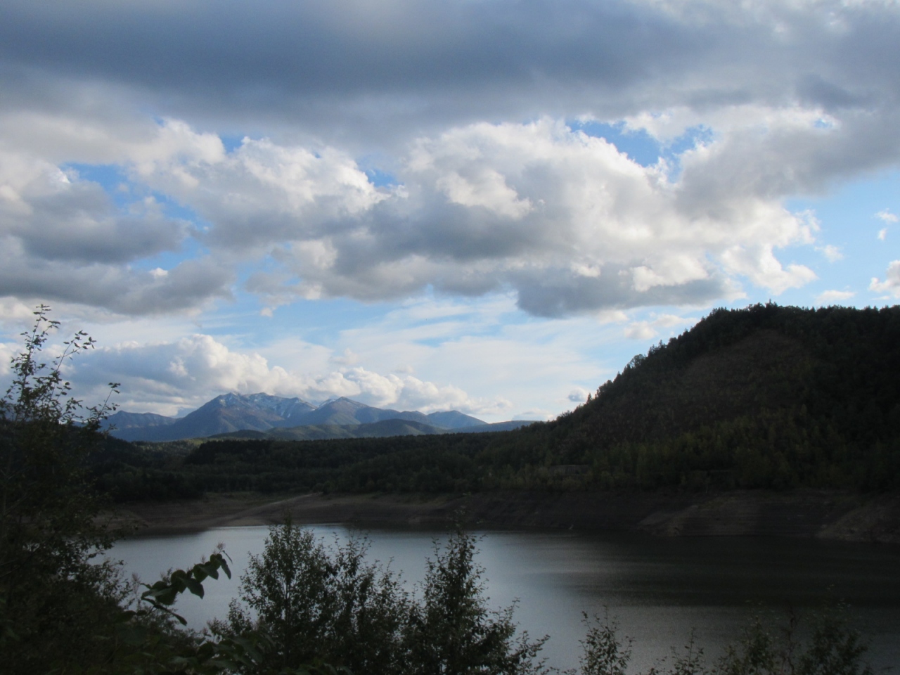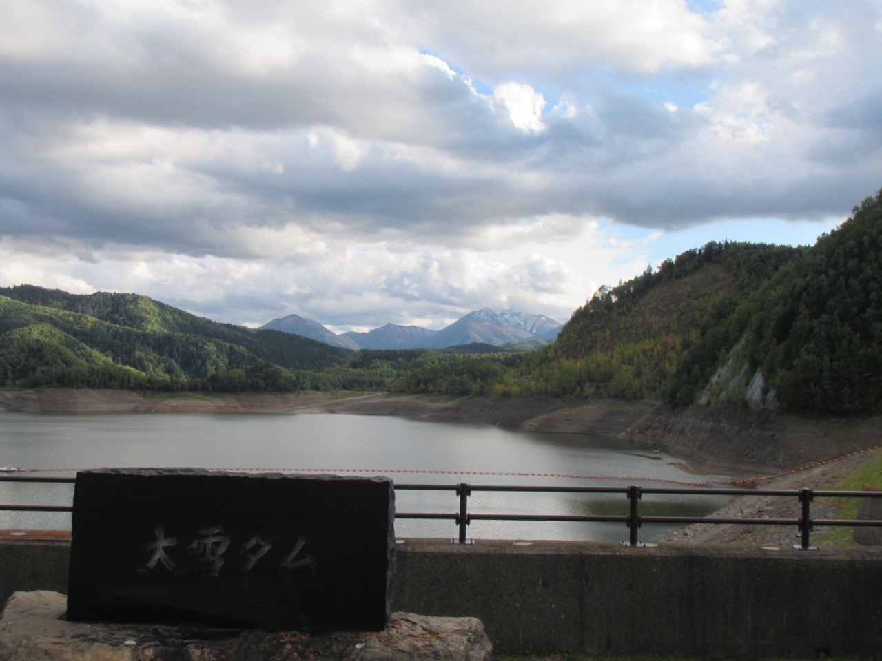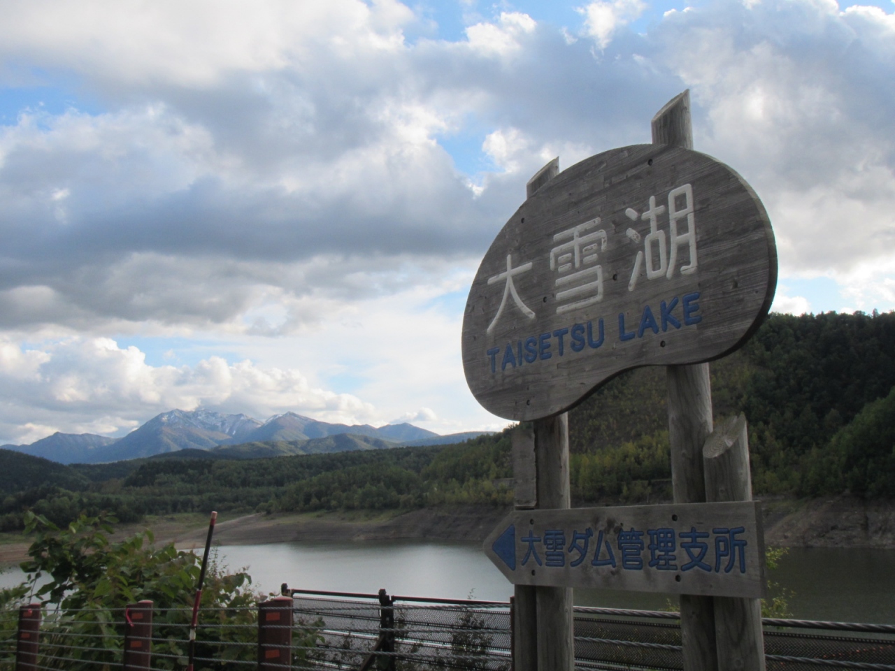 その両国道が分岐する辺りに大雪ダムがあって、分岐から帯広側にダムの手前までわずかに行ったところに駐車スペースがあって、車を停めて湖や石狩岳連峰の風景を眺めることができる。
