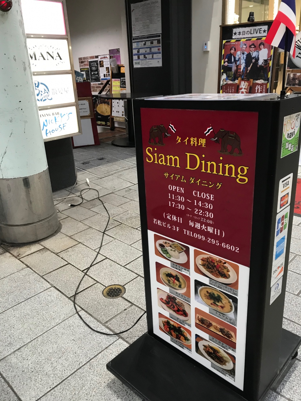 天文館の有名なラーメン屋「くろいわ」の近くにあり、外に看板と少しメニューが出ています