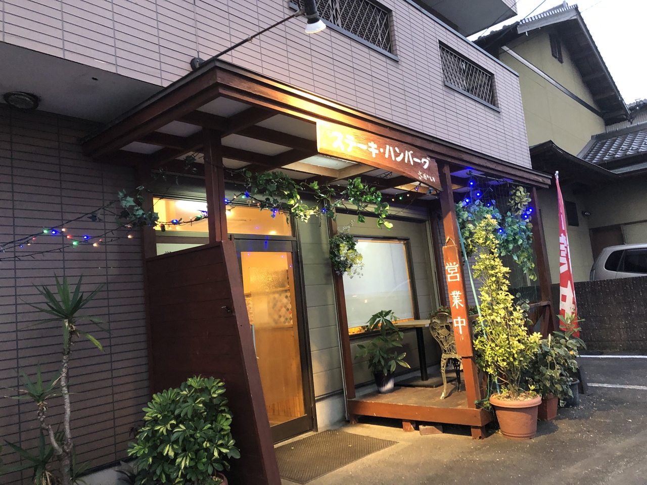 国道202号線原交差点から、四箇田団地方面に約15分、三軒茶屋バス停前に、お店があります。メニューも、ハンバーグ、ステーキ、エビフライ、そして、その混合と、種類が豊富です。お肉類は勿論のこと、スープ、ご飯と、たっぷり美味しくいただき、お値段も、良心的で、Good!!