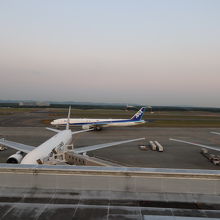 また円形状の駐機場構造なので、どこかで飛行機がバチッと見えるポイントが無く