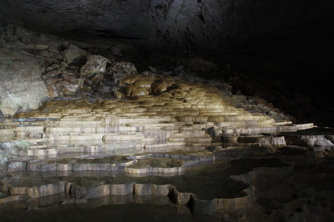 秋吉台の地下に広がる鍾乳洞である秋芳洞。カルスト地形は地下に鍾乳洞ができやすいですが、その代表例としても貴重です。公開されている場所には、通路がめぐらされており、手すりなどもありますので、スムーズに移動できます。ただし薄暗く足元が見えにくい場所、滑りやすい場所もあるので注意が必要です。