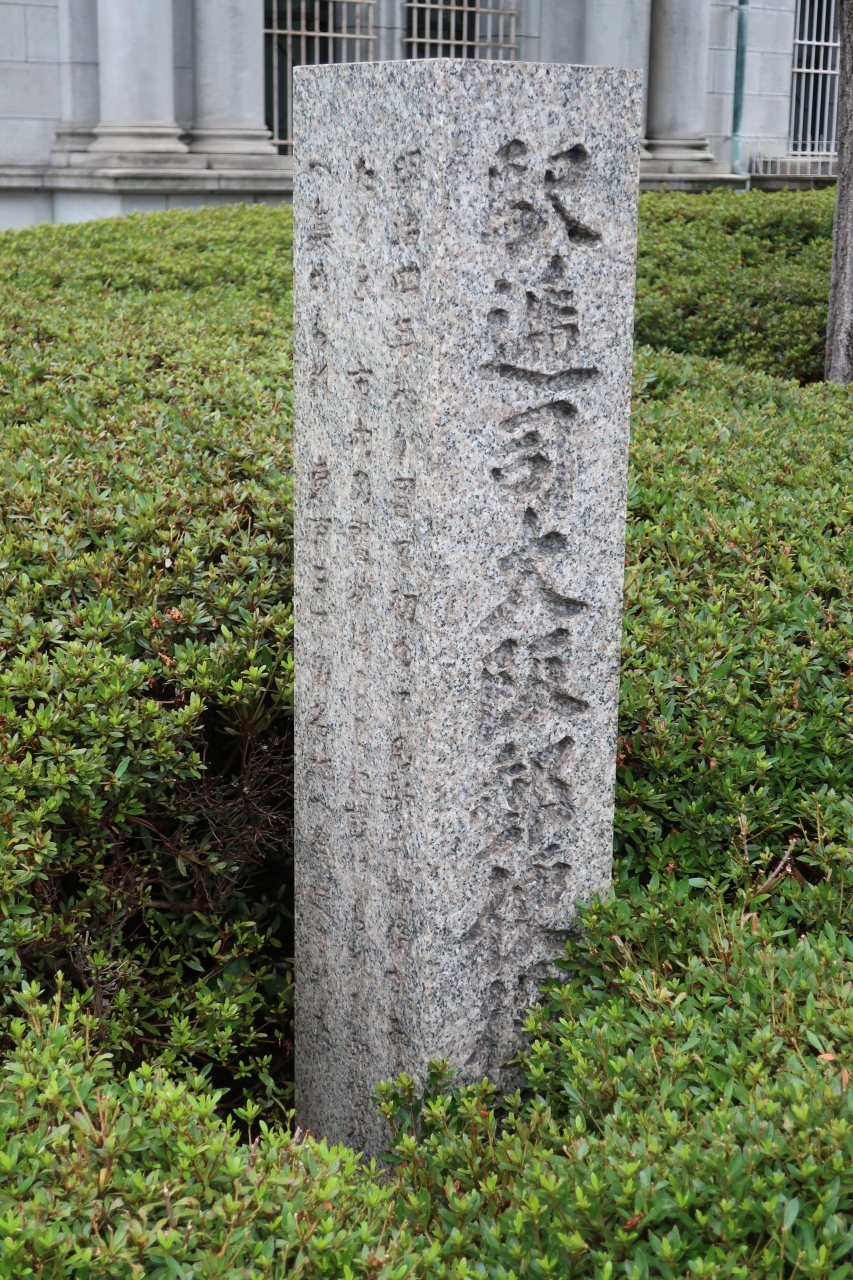 大阪 中之島にある日本銀行大阪支店の旧館左手の植え込みの中に駅逓司大阪郵便役所跡の石碑が建てられています。普通に歩いていると気づかずに通り過ぎてしまいますが、赤くない変わった郵便ポストが手前にあるので気づきました。明治4年に郵便制度が発足した際に島原藩蔵屋敷跡を駅逓司大阪郵便役所として開設されたそうです。