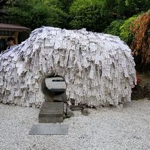 御祈願の方法は、まずご本殿にご参拝して、次に形代に切りたい縁・結びたい縁などの願い事を書き、形代を持って願い事を念じながら碑の表から裏へ穴をくぐる。これでまず悪縁を切り、次に裏から表へくぐって良縁を結ぶ。そして最後に形代を碑に貼っる。