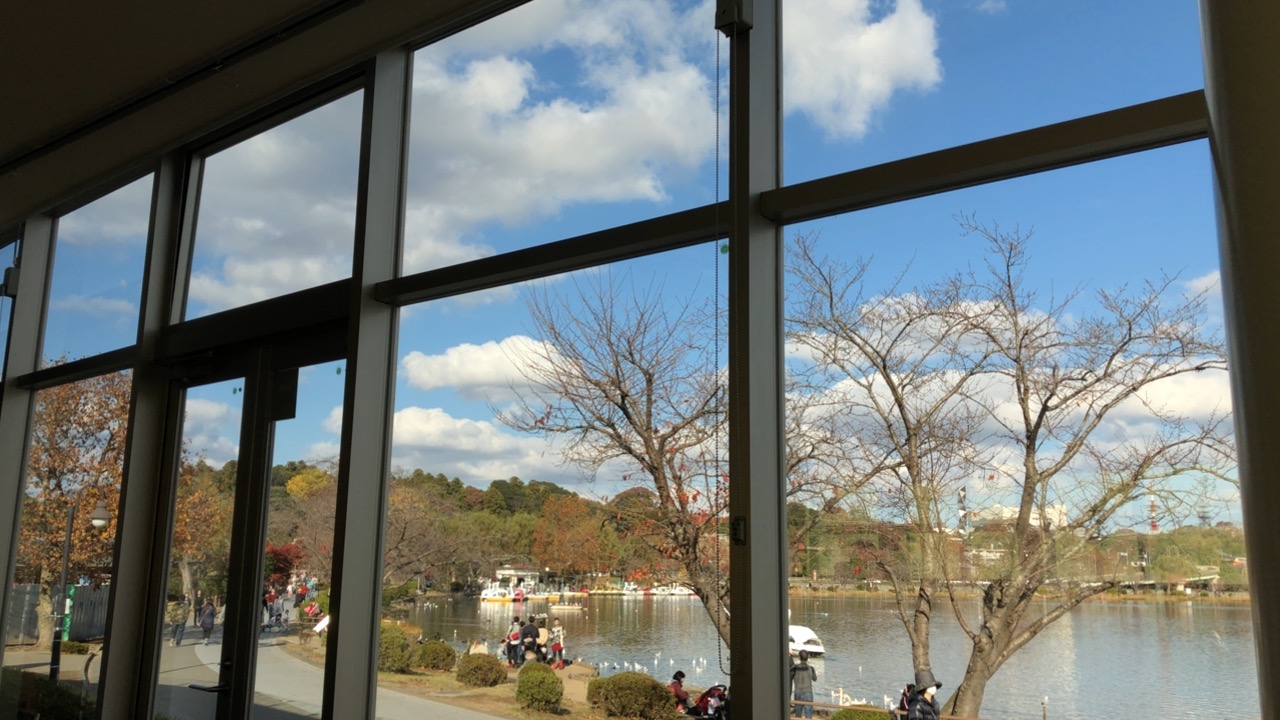 ガラス越しに千波湖を眺めながら「好文カフェ(café)」~水戸・千波湖~