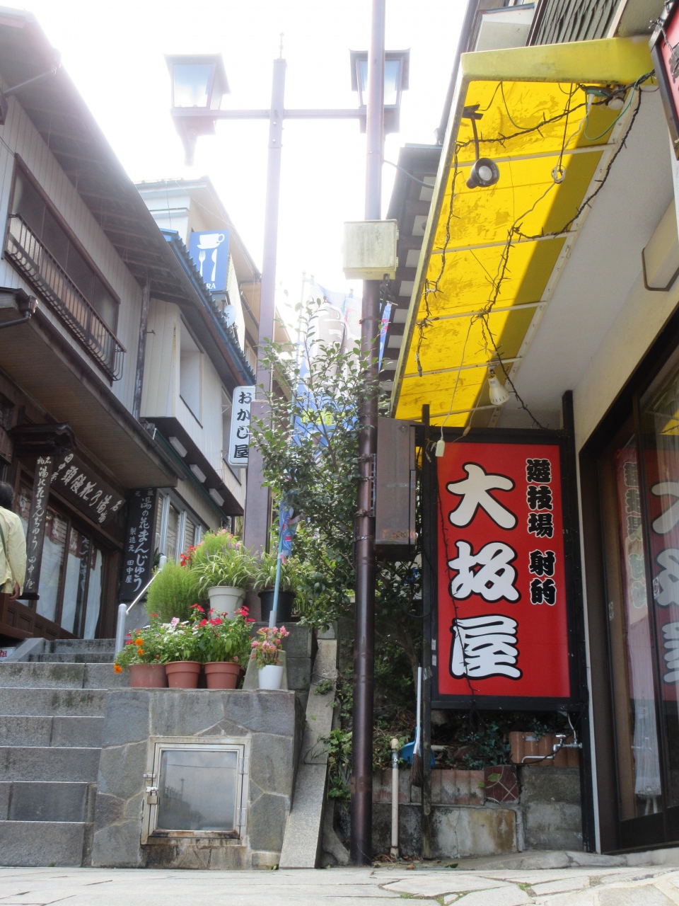 今回宿泊した岸権旅館の隣に建つ、石段街にある遊技施設です。射的が楽しめ、初めてする人には、店の方が丁寧に教えてくれました。昔懐かしの温泉施設が少なくなりつつある中で、大坂屋だけでなく、弓矢を楽しめる店や、ビールを飲みながら射的が楽しめる店など、温泉街にある昔ながらの店が今も存在することは伊香保温泉の特徴の一つだと思います。いつまでも営業を続けてほしいです。石段街の一画に、射的で取ったアヒルの人形が数百個まとめて置かれていたのが面白かったです。