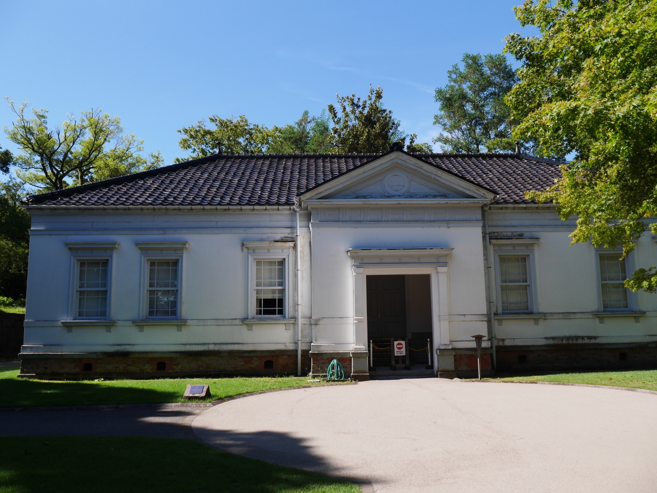 金沢城内北西部、切手門の奥にある平屋の建物です。明治31年に建てられた旧陸軍の施設だそうです。なぜこの場所だったのか、ここで何をしていたのかはわかりませんでした。中に入ることはできず、外観のみの見学になります。