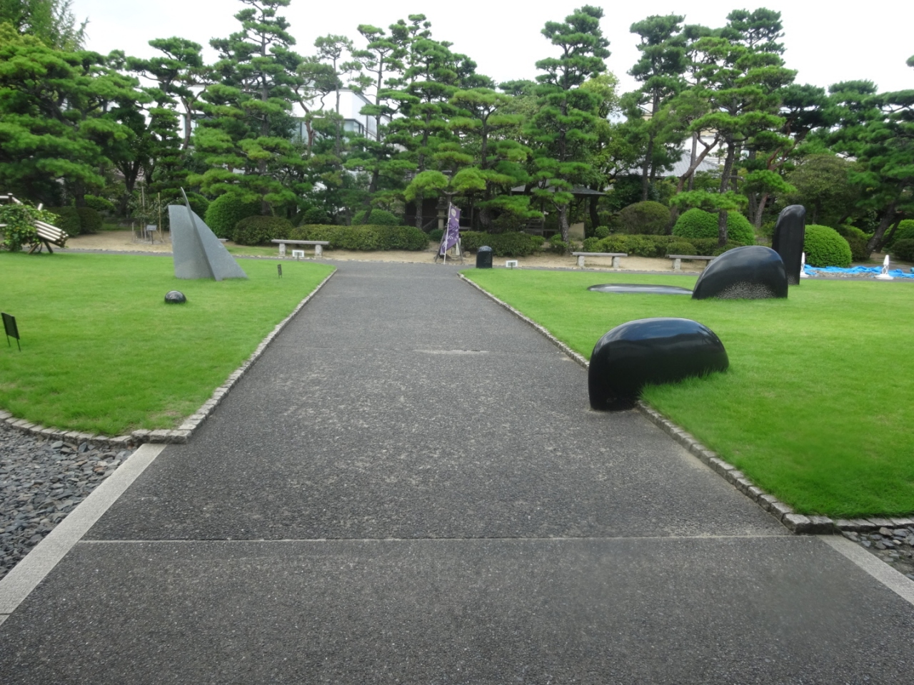 いわゆる日本庭園というにはちょっと違いますが、よく手入れされていて、またイサムノグチの作ったオブジェなども別館前に展示されていて見ごたえありました。