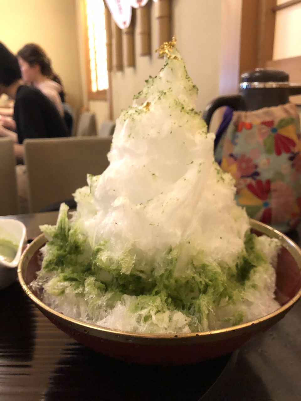 今回はあまりにも暑かったので、かき氷にしてみました。残念ながらいちごのかき氷はすでに終了していて、特上抹茶の宇治金時。氷が大きくてびっくりしました!!甘みは別添えの蜜を好みで足していただきます。中に隠れている白玉と粒あんがまた美味しい。抹茶の味が濃くてとても良かったです。