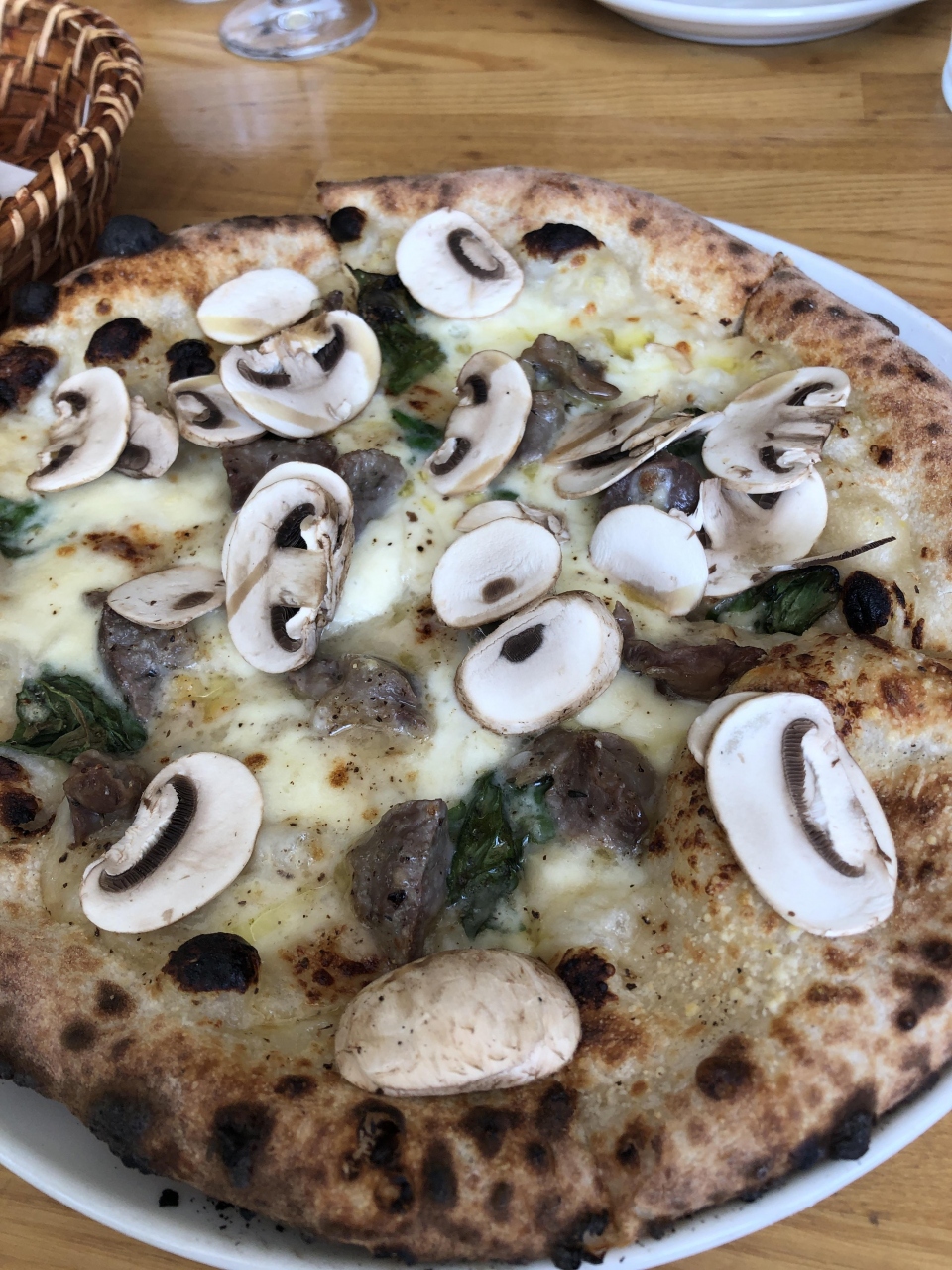地下鉄北山駅界隈はおしゃれな店が目白押しで目移りする。暑いのも手伝って、通りの向かいにおしゃれなピザレストランを発見、近づいてみると薪窯もあって良さそう。駅の真上だし、即決。本日のピザもパスタも一風変わっていて良さそうなので注文。食べてみると納得のオリジナリティ。当たりでした。グラスワインもたっぷりあってお得。また行きますね。