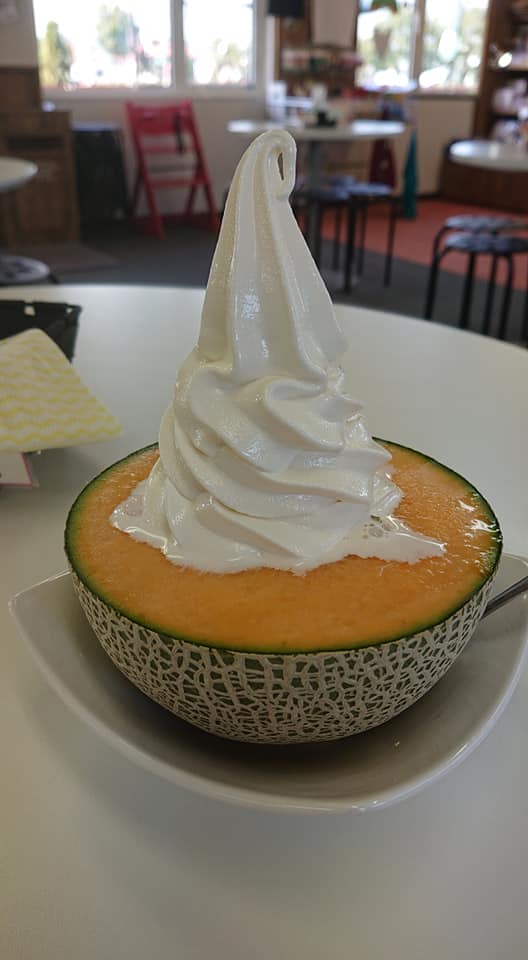 夕張メロンの上にアイス!最高!に見えますが、せっかくの甘いふらのメロンの時期にアイスクリームを乗せると、アイスクリームの甘さでメロンの味が半減です。かなり昔からはありますが、インスタ映えにはいいと思うんですがねぇ。