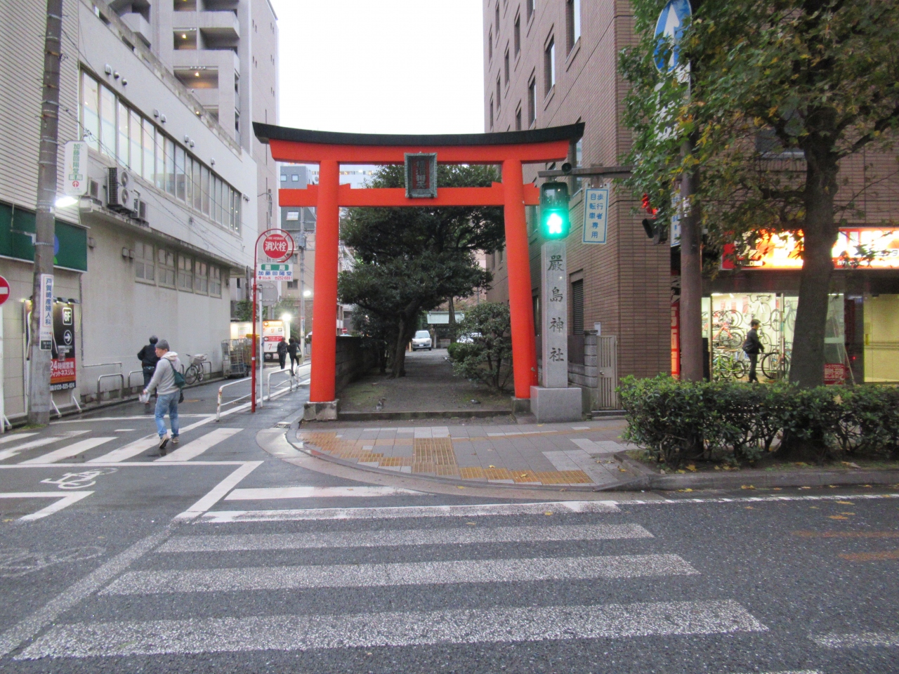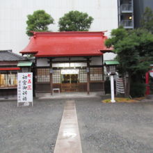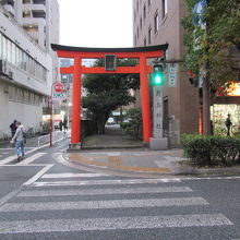 繁華街のビルの谷間に神社という異空間があるという雰囲気です。