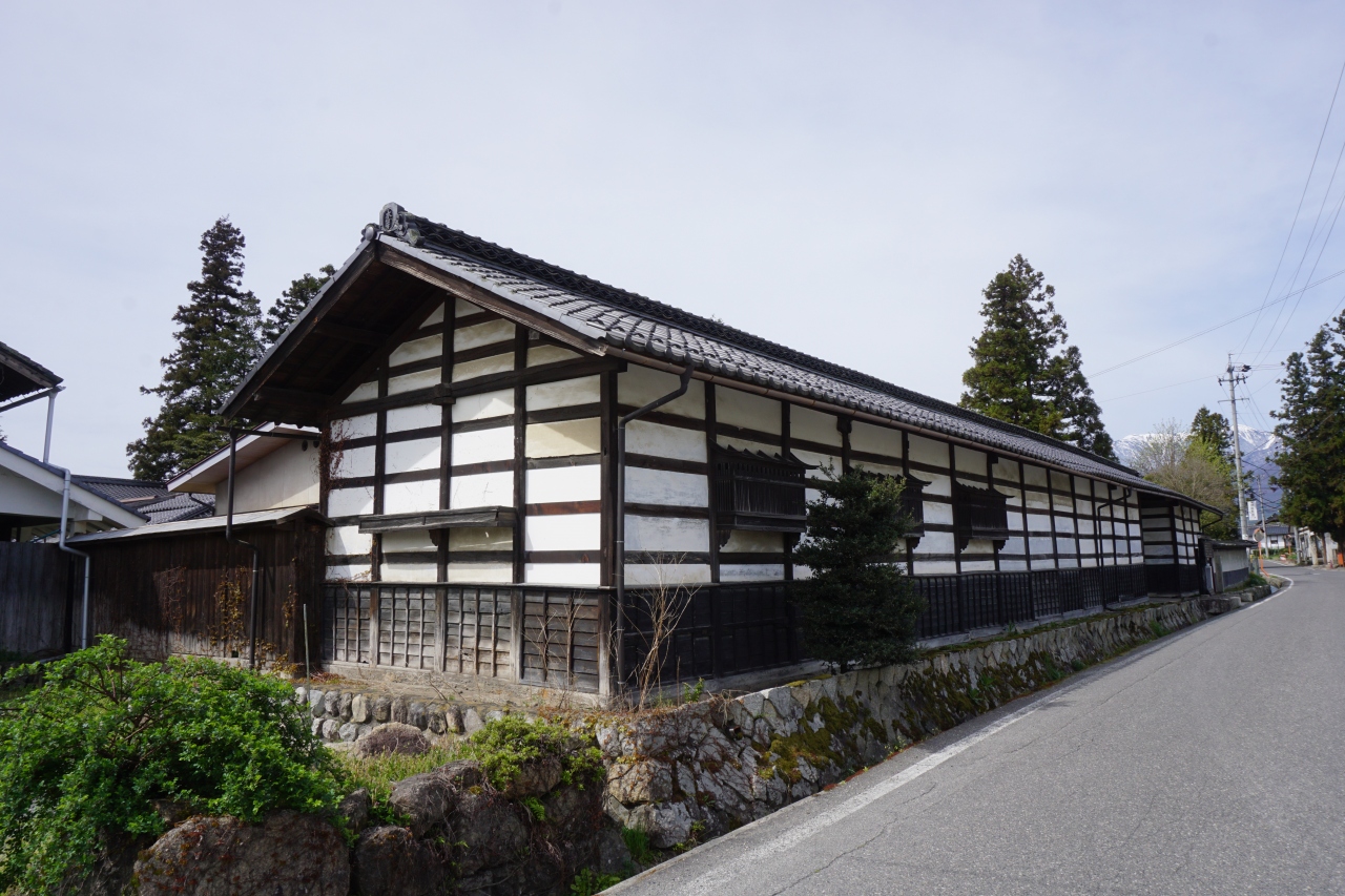 こちらは、庄屋として松本藩主の野行の際の休憩所として使われた御本陣。ただ、よく見ると現在は工事中のために閉鎖中。屋敷を囲む周囲の塀や長屋門を拝見するだけしかありませんでした。ただ、雰囲気としては、ちょっと傷みも目立つ感じ。確かに工事は必要なのかなと感じました。