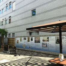 両国公園内のラジオ体操広場の横にあり、横長の看板のような場所に説明文と写真や絵等を掲載しています。横に長い看板で、まるで資料館の展示物のようにも見えました。説明文の前には椅子もあり休むこともできます。綺麗な展示物でした。