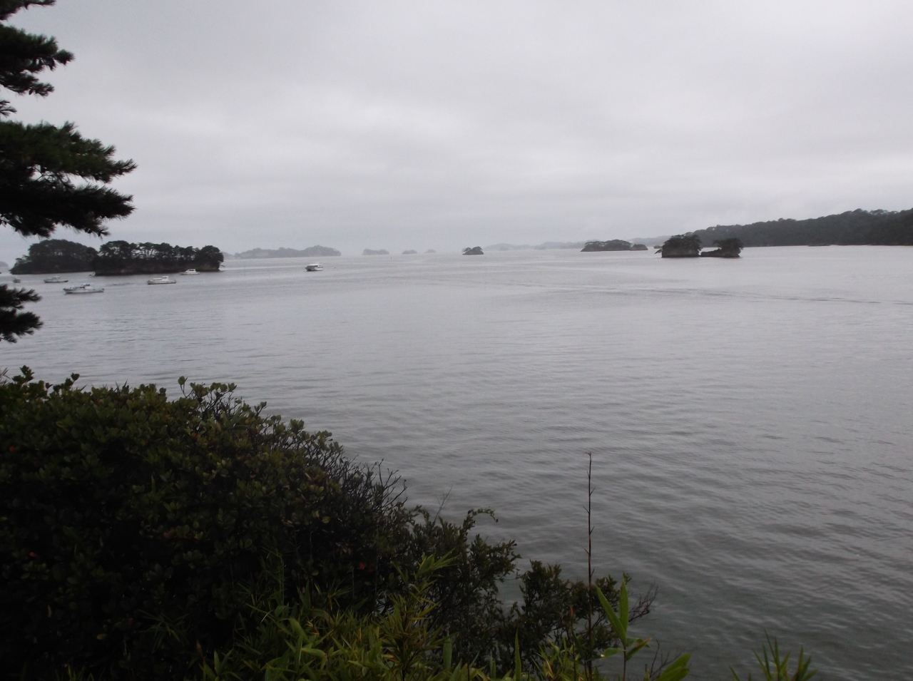 仙台駅から松島海岸駅まで40分。そこはもう、日本三景の松島の美しい眺めが見渡せます。あいにくの雨で、少し霞んでいたのが残念でした。車で来ることができれば山の上からも松島の美しい島々の景色が見られるのに、と思いました。
