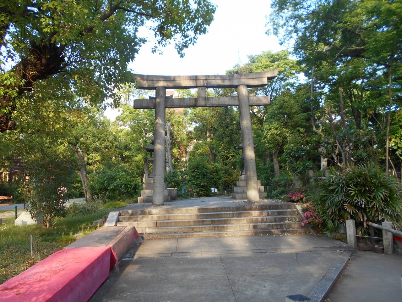 上町台地の中心部に鎮座する大阪最古の神社「生國魂神社」の鬱蒼とした森に囲まれた境内の北側に建つ八つの境内末社の一つ。本殿と並列して同じく東に向いて鎮座しているのが皇大神宮で大きな石の鳥居も目立ちます。天照大神を祀る神社です。
