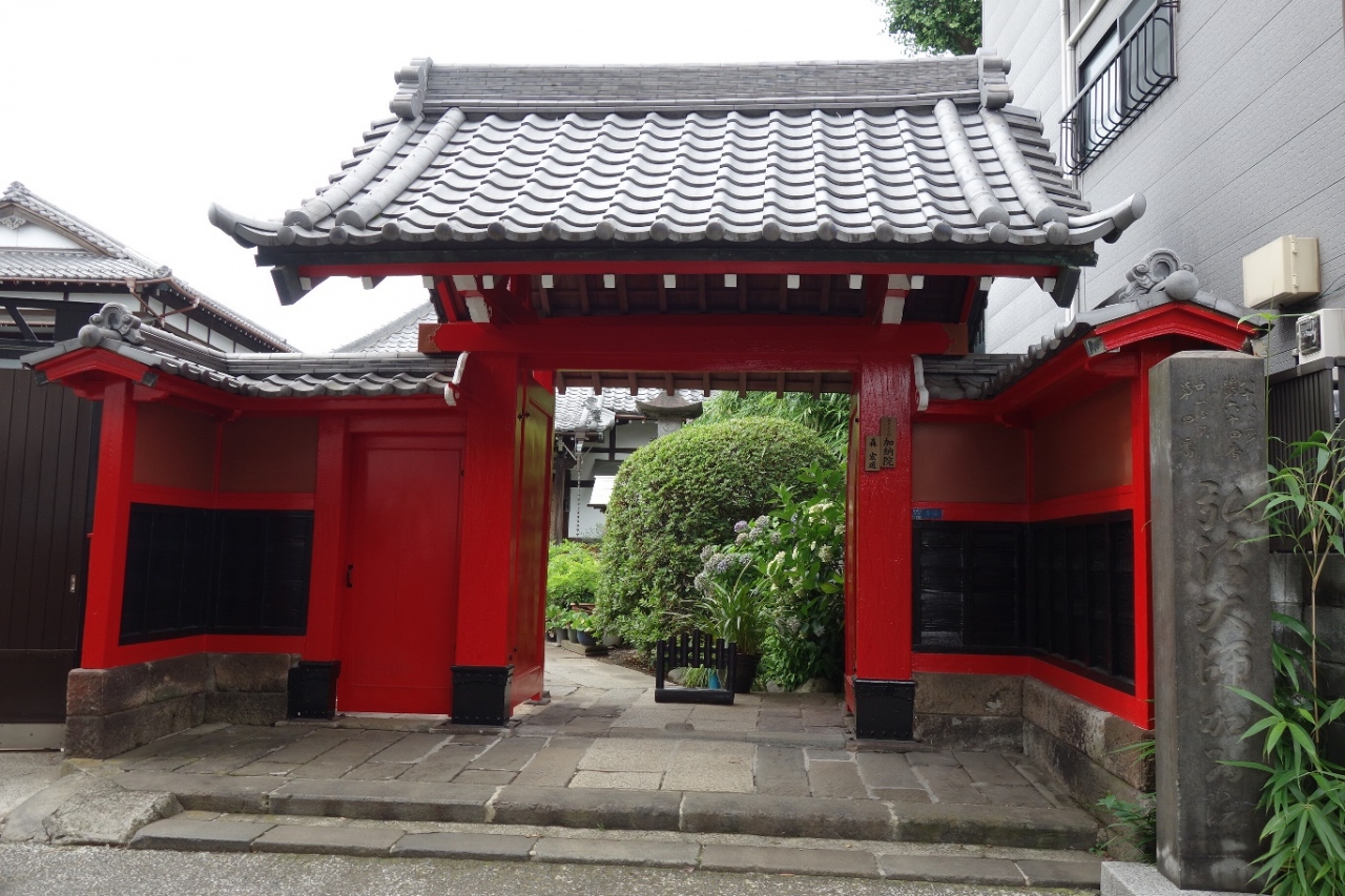 谷根千あたりのエリアを散策中こちらのお寺に立ち寄りました。日暮里駅や谷中墓地に近い初音の道から蛍坂の方へ進むと道沿いに鮮やかな朱い山門が見えて大変目立っていました。境内は緑が多く静かで趣が有る雰囲気でした。