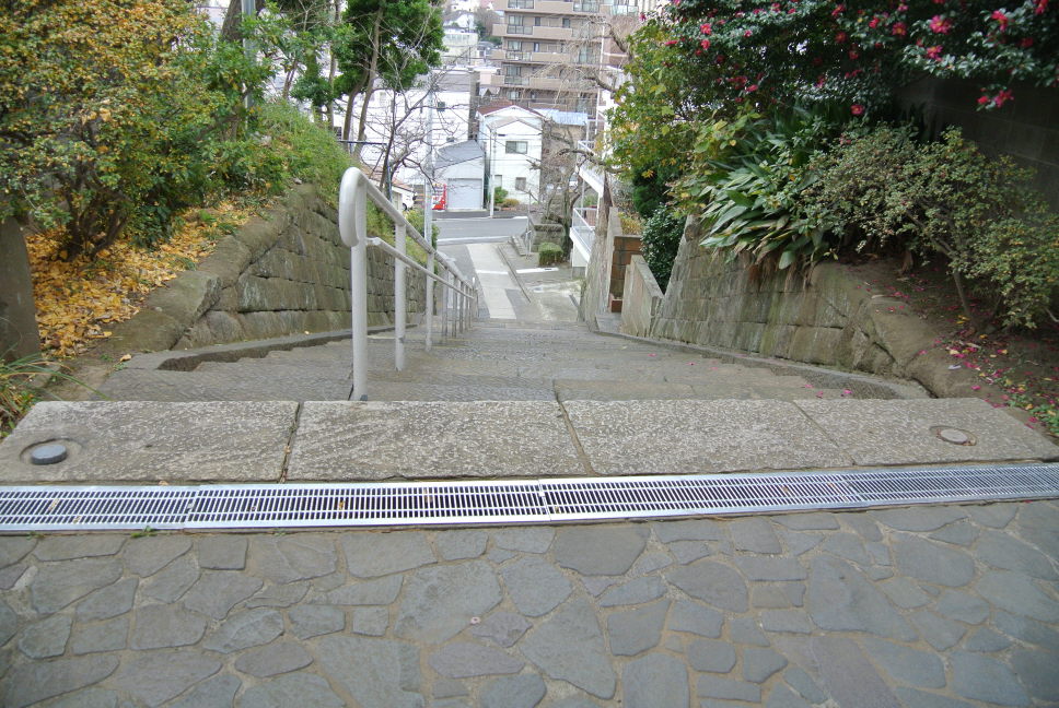 急な階段を上って。