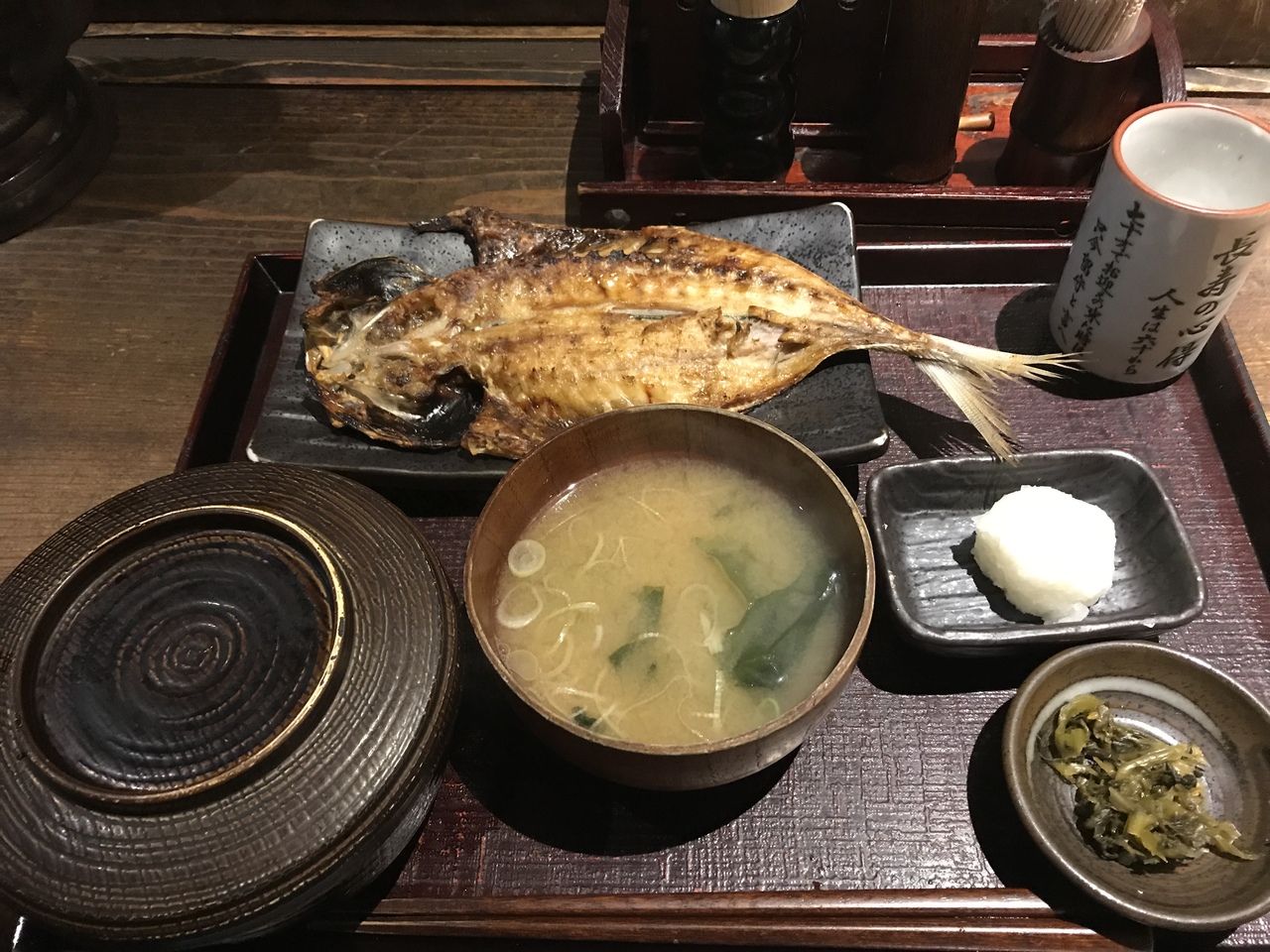 歌舞伎座の近くにある昔ながらの日本家屋の焼き魚定食屋さん。色々な種類の焼き魚があり、炭火でしょうか?注文すると焼いてくれます。焼き魚の種類はいろいろあります。焼き魚、ご飯、味噌汁、大根おろし、漬物のセットになります。店内は入ってすぐカウンターその奥に仕切られたテーブル席、2階もあります。