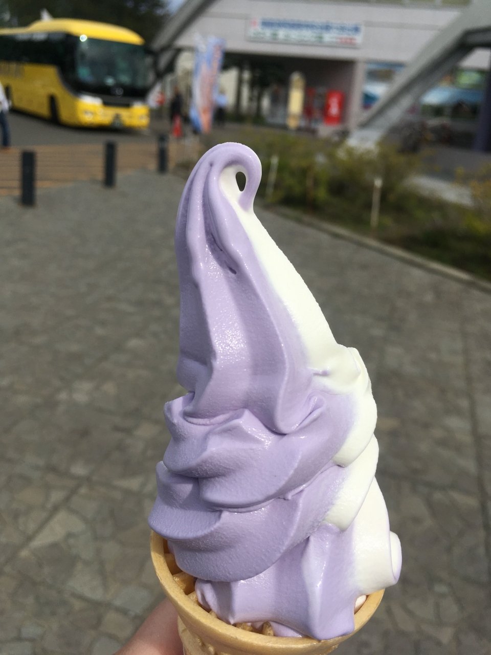 私はラベンダーとバニラミックスのソフトクリームを食べました。