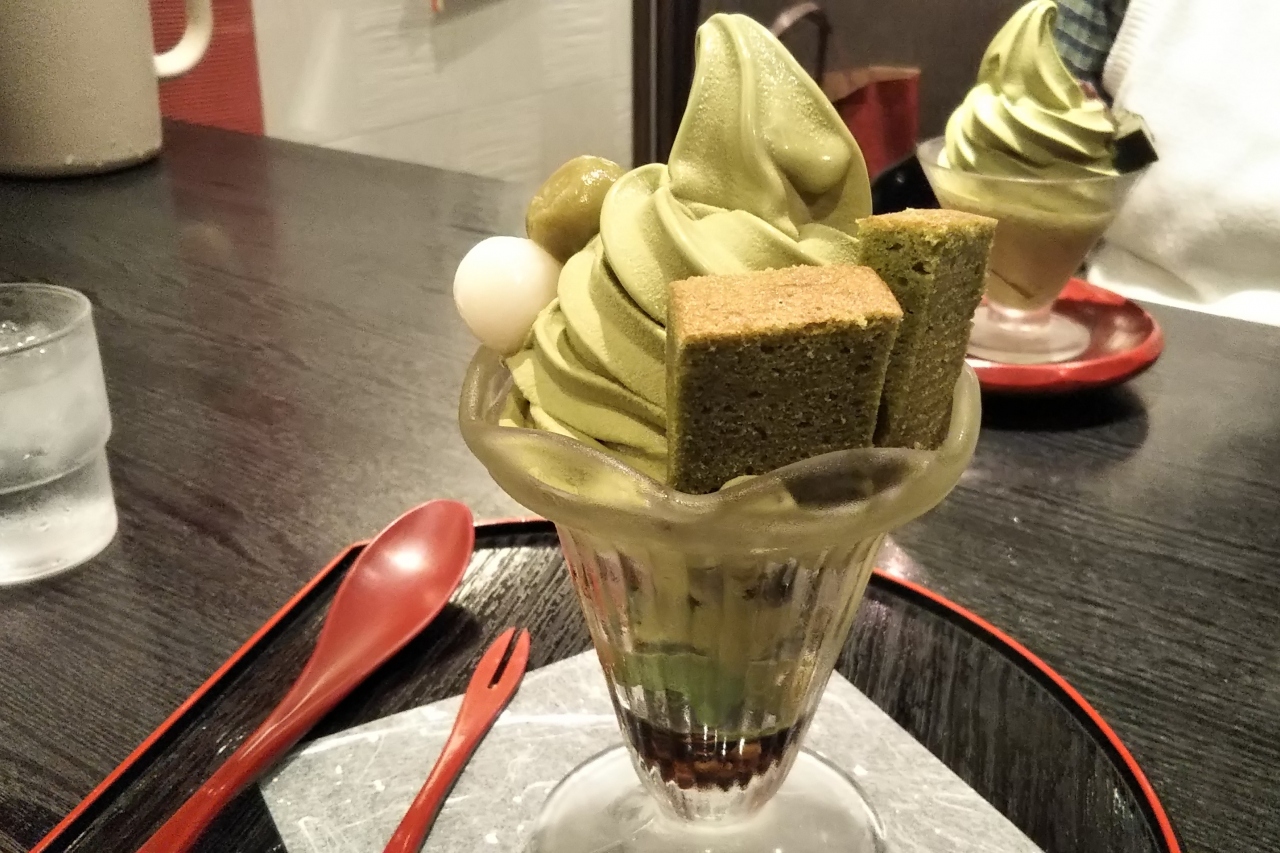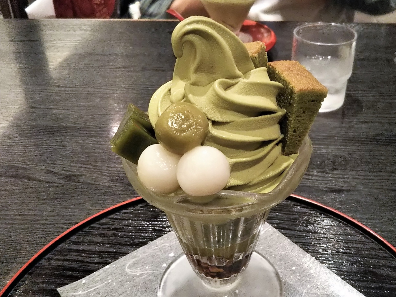 お茶の時間だったので、私は「抹茶パフェ」を、母は「抹茶クリーム」を注文。どちらもかなりのボリュームですが、近隣相場に比べて非常にリーズナブル。抹茶ソフトクリームはしっかり抹茶の風味を感じますが濃厚過ぎるほどではなく、どちらかというと食べやすい印象です。パフェには抹茶バウムクーヘンや抹茶ゼリー、白玉などもトッピングされていて盛り沢山。見るのも食べるのも楽しかったです。(ブログに詳細書いてます)