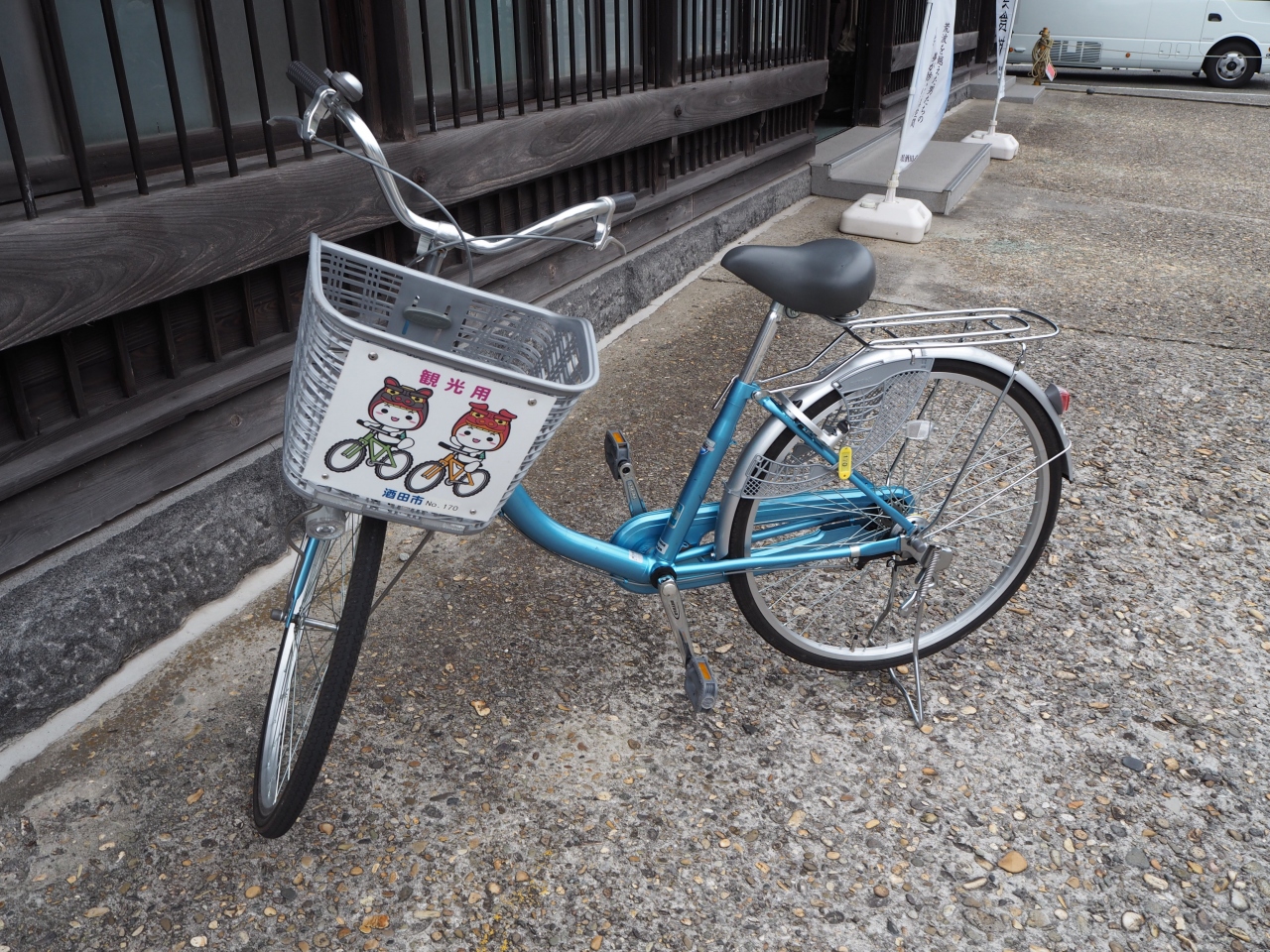 酒田駅の観光案内所で自転車を借りました。無料で利用できます。免許証などの身分証明書が必要です。酒田市街地は効率的にまわるには自転車は最適です。バスは本数は少なく、歩くと時間はかかりそうです。自転車は前輪の上に大きなかごが付いていて荷物を入れるのに便利でした。駅前の駐輪場には10台ほどの自転車がありましたが、観光シーズンの時はすべて出払っていることもありそうです。