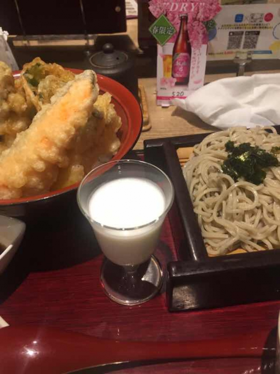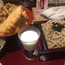 セットメニューが充実しており、ざるそばと天丼など、ボリュームあって、良いです。