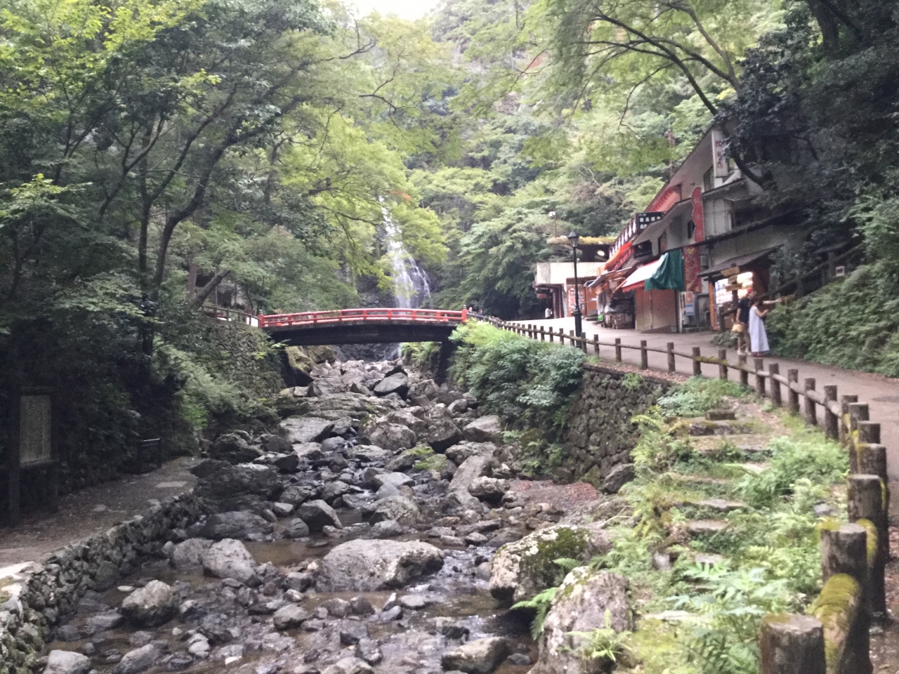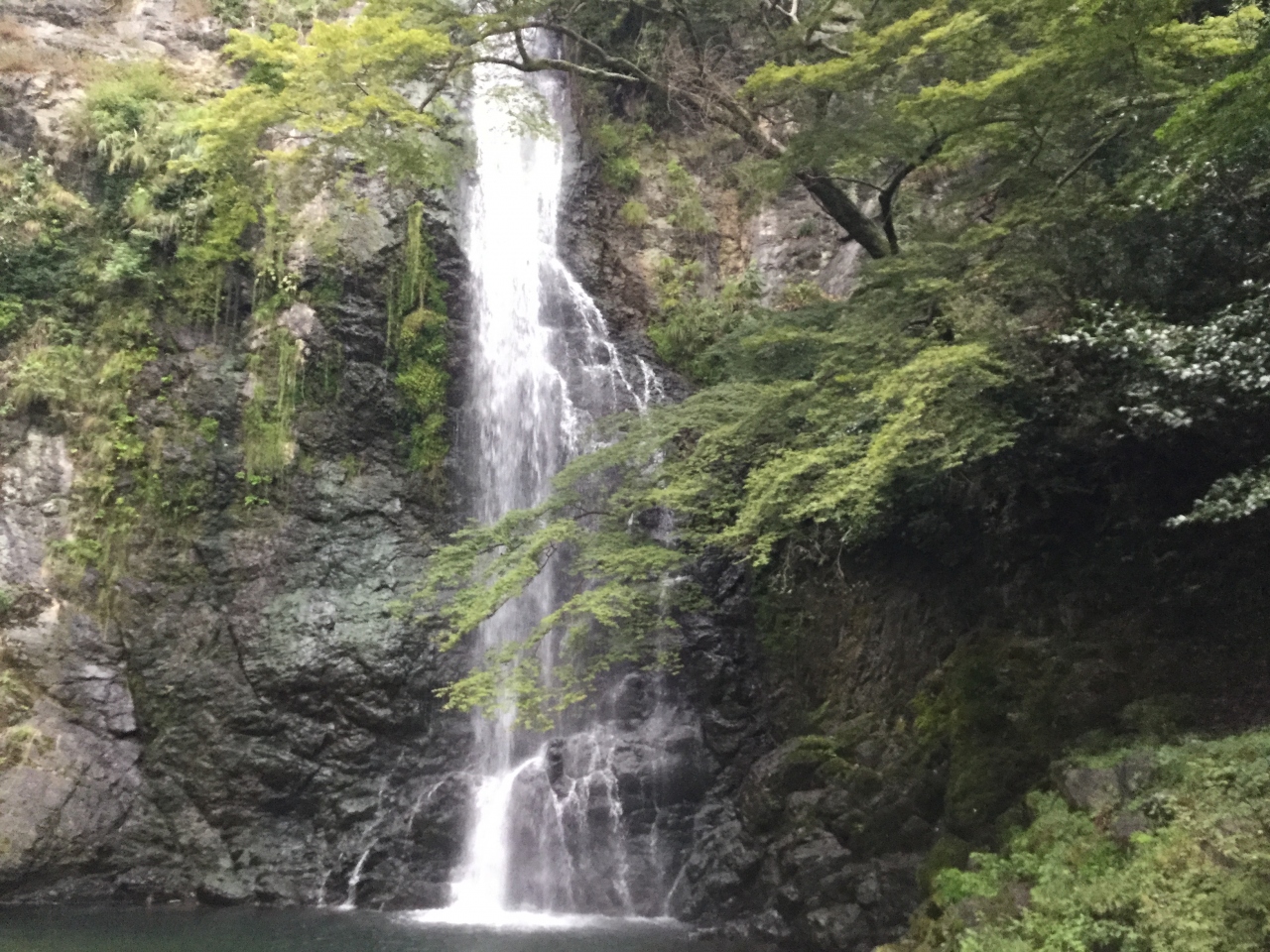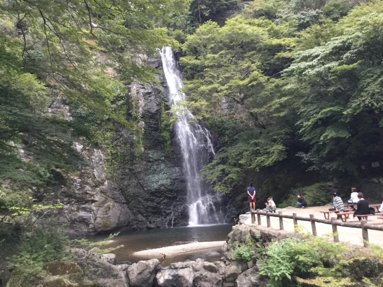 阪急箕面駅を降りて直ぐに散策路に入る道があってひたすら歩いて歩いて、途中ベンチもあるので少し休んで、また歩いて着いた大滝は清々しい世界でした。行く道は整備されているので車でもいけるそうです。ジョギングや散歩している人も多くて夕暮れにならない限り怖くなく、水の音を聴きながら、自然を満喫出来ます。夏は蛍も見に来たのですが大滝は久しぶりで、ミストパワーを浴びて、心洗われるような清々しい時を過ごせたました。