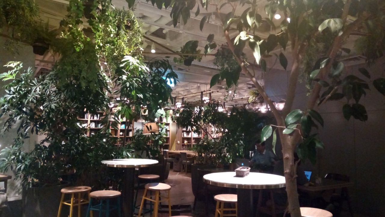 店内は緑あふれるおしゃれな雰囲気でした。基本カフェなので、椅子はあまり長居には向いてない椅子でした。