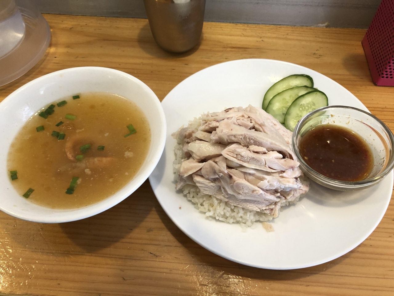 カオマンガイが本格的な美味しさ!カオマンガイのサイズも選べるだけでなく、肉の量もオプションで増やせたり、タレの種類も選べる。スープも200円追加でトムヤムクンにできたりと至れり尽くせり。店員さんはちょっと強面だけど、ものすごく真摯な対応で、何度でも通いたいお店です。