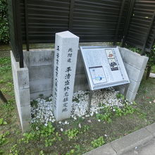 京都駅八条口のホテルから新幹線の高架をくぐる手前の集合住宅の一角に石碑やいわれを記した説明書きがある。