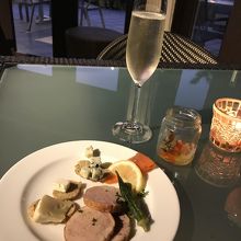 日中はソフトドリンク、カクテルタイムはアルコール類と軽食が供されます。
