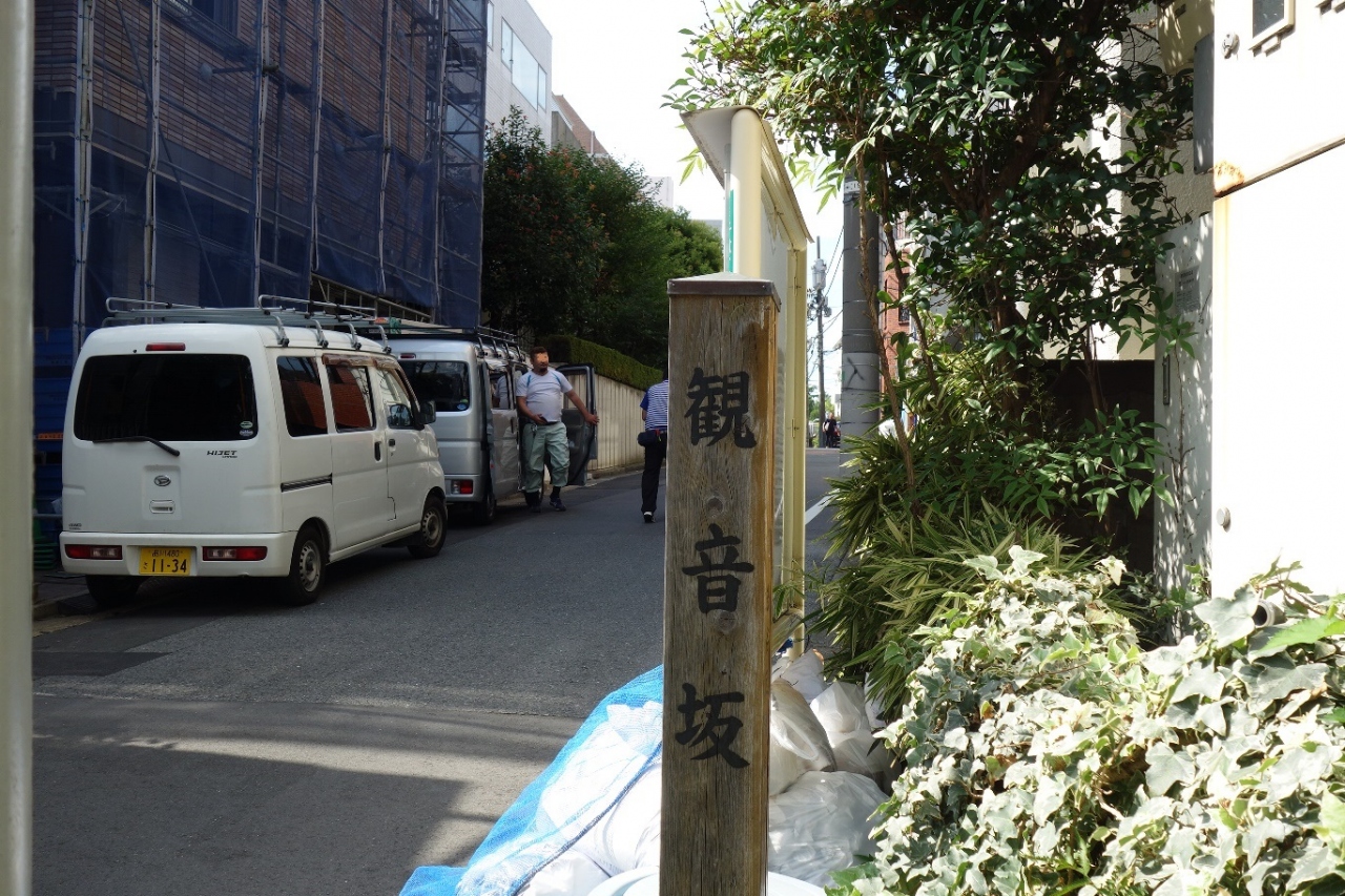千駄ヶ谷辺りのエリアを散策中こちらの坂道を通りました。道幅は広くなく坂の両側は都会の住宅地となっていました。それでも周辺に寺院や神社が幾つかあっていくらか昔の地域の様子を想像しながら歩くことが出来ました。