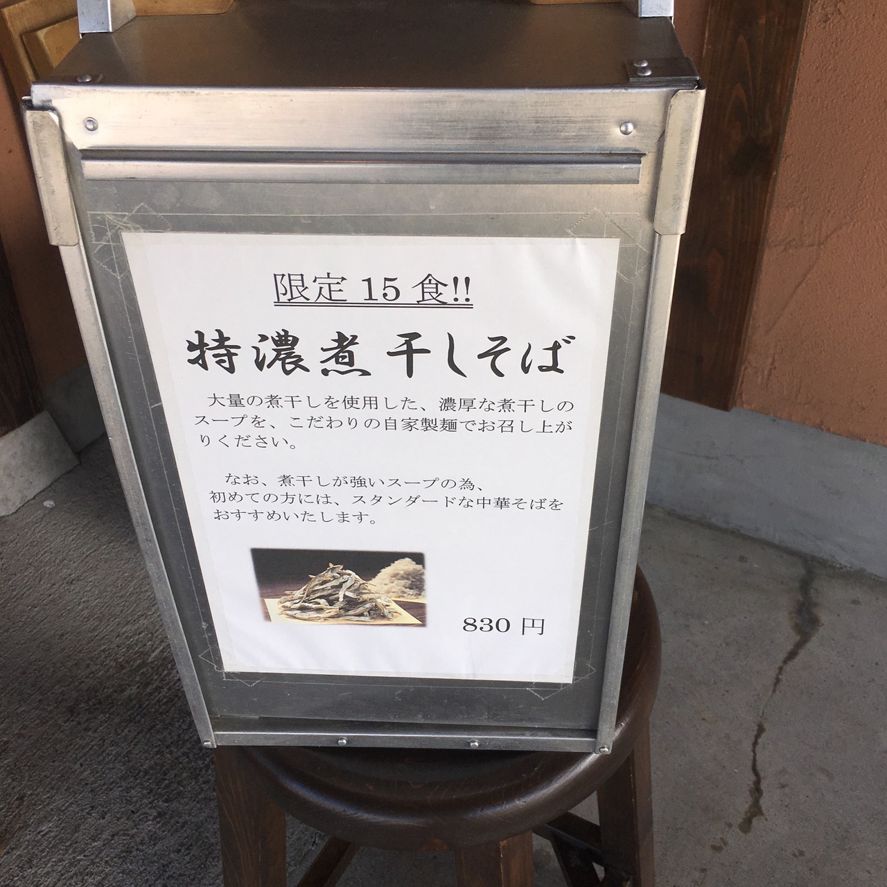 ☆「特濃煮干しそば」見た目はグレー色でゲンナリ・・ポタージュ風スープは、まぁ煮干し・・自家製麺は中太ストレートで噛み心地よろし←結局のところ旨い
