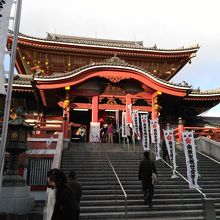 ここを起点に、アーケードの商店街がかなりの距離でのびていて、おまいりとあわせて楽しめます。
