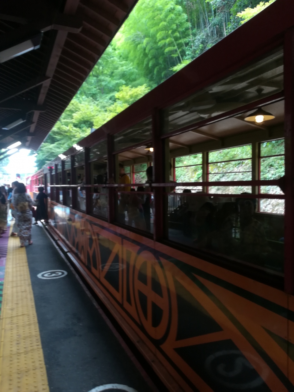 亀岡から嵐山までを結ぶ観光列車。JR嵐山駅に隣接してるのはトロッコ嵯峨野駅です。トロッコ嵐山駅とJR嵐山駅は少し離れています。私が乗ったのは土曜日だったので満席でした。半分以上が外国の方でした。トロッコ列車から見られる保津川はとてもきれいで癒されます。