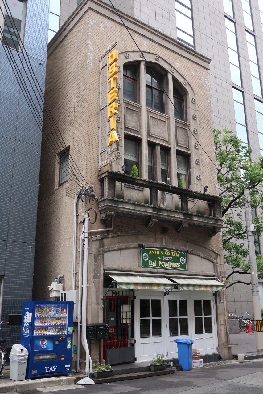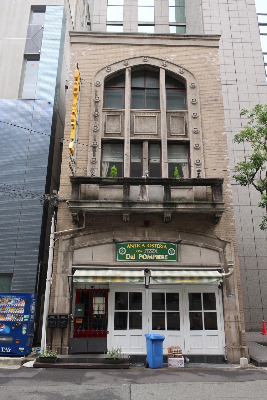 大阪の北浜、淀屋橋界隈には戦前から残る近代洋風建築(所謂レトロ建築)が多く残る場所で、大阪倶楽部の近くにある旧中央消防署今橋出張所もその一つです。大正14年に建てられた建物は1階に消防車車庫跡、2階には大きな窓とバルコニーを備えています。現在はイタリアンレストランに改装されていますが、可愛いレトロ建築です。