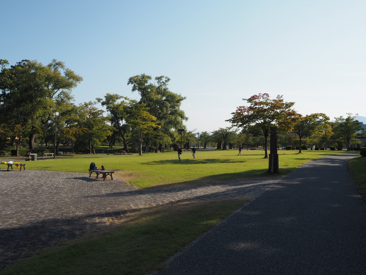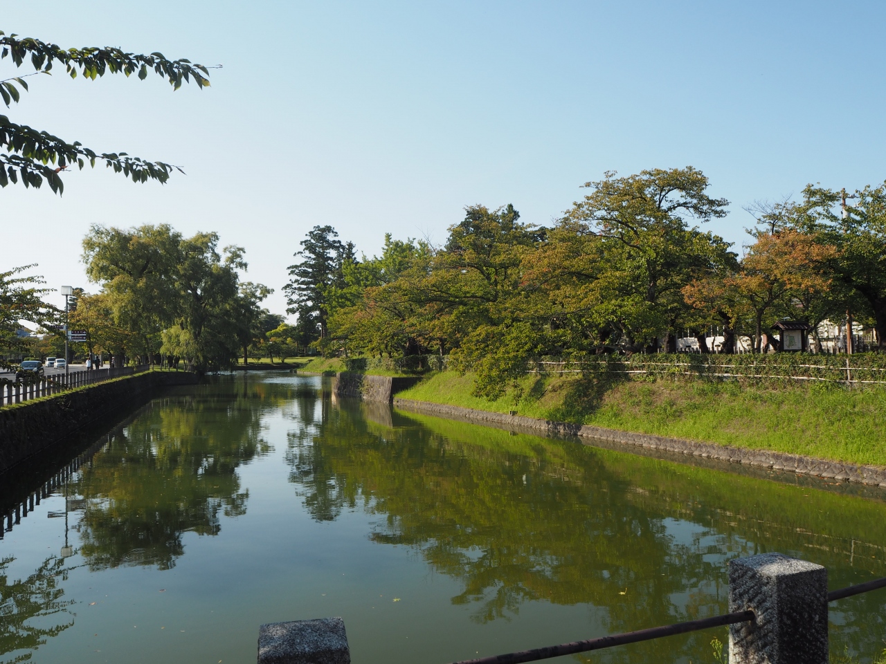 鶴が丘城址が鶴岡公園となっています。城などの建造物は何もありませんが、城らしきものは堀と立派な石垣が残っています。公園内はきれいに整備されて、木々も多く、芝生も敷き詰められている場所もあり、地元の方たちの散策場所になっています。公園内には荘内神社や藤沢周平記念館などもあります。