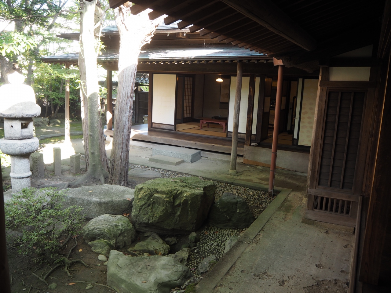 鶴ケ丘城址公園からも近い場所に旧風間家の邸宅はあります。部屋数の多い、木造建築の大きな邸宅です。江戸時代以来よりの豪商であった風間家の邸宅です。商家ということで、華美さはありませんが、しっかりとした木造建築技術が感じられます。ガイドの人が一通りの説明をしてくれます。日本海側の街では豪商の家が多いなと感じながら見ていました。
