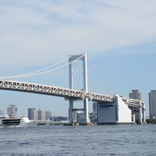 「東京ウォータータクシー」という、ベイエリアを循環するボートサービスに乗った時に、お台場付近からみました。