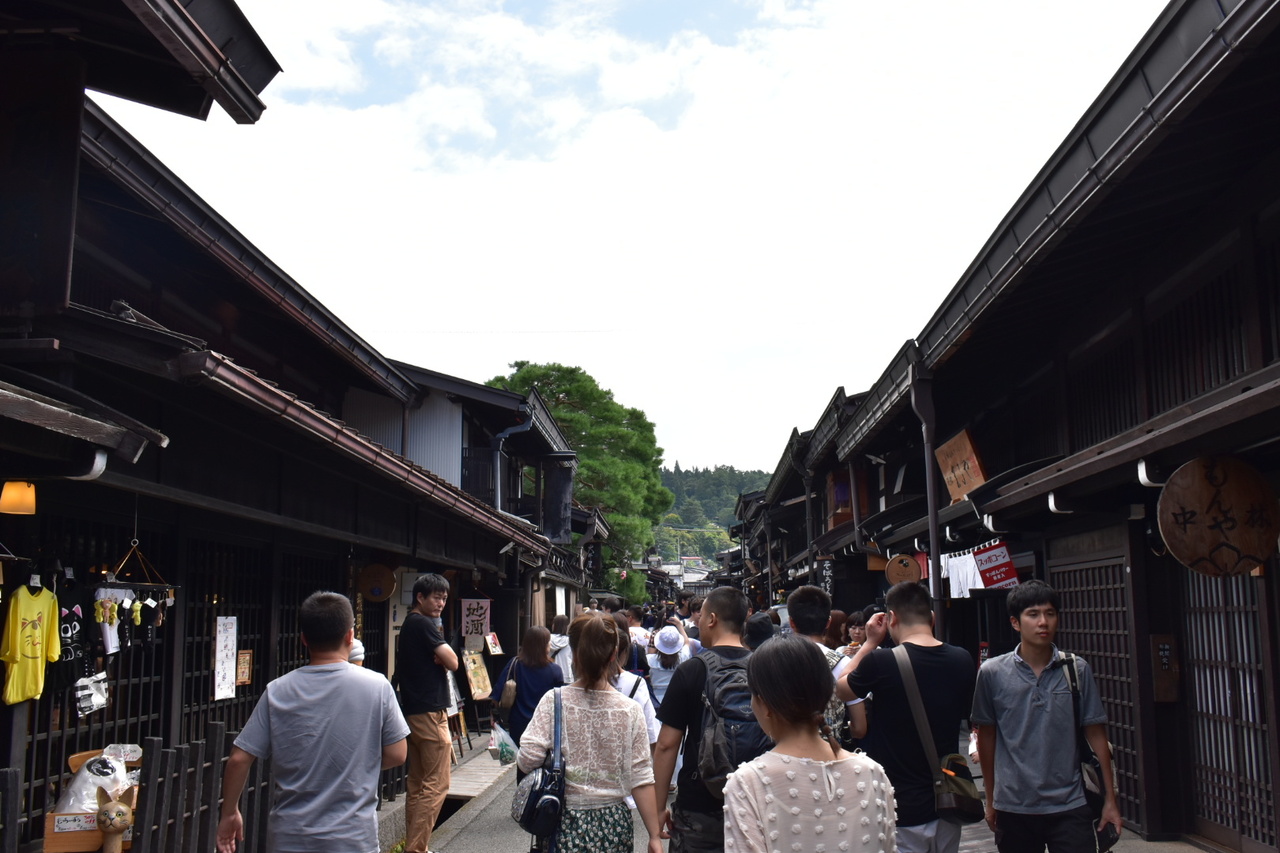 さんまち通りは高山駅からまちなみバスで約10分です。さんまち通りは筏橋がある通りで鍛治橋がある安川通りの方に歩いて行けば左右に食べ歩きができるようなお店がたくさんあり、疲れたら人力車に乗ることもできます。