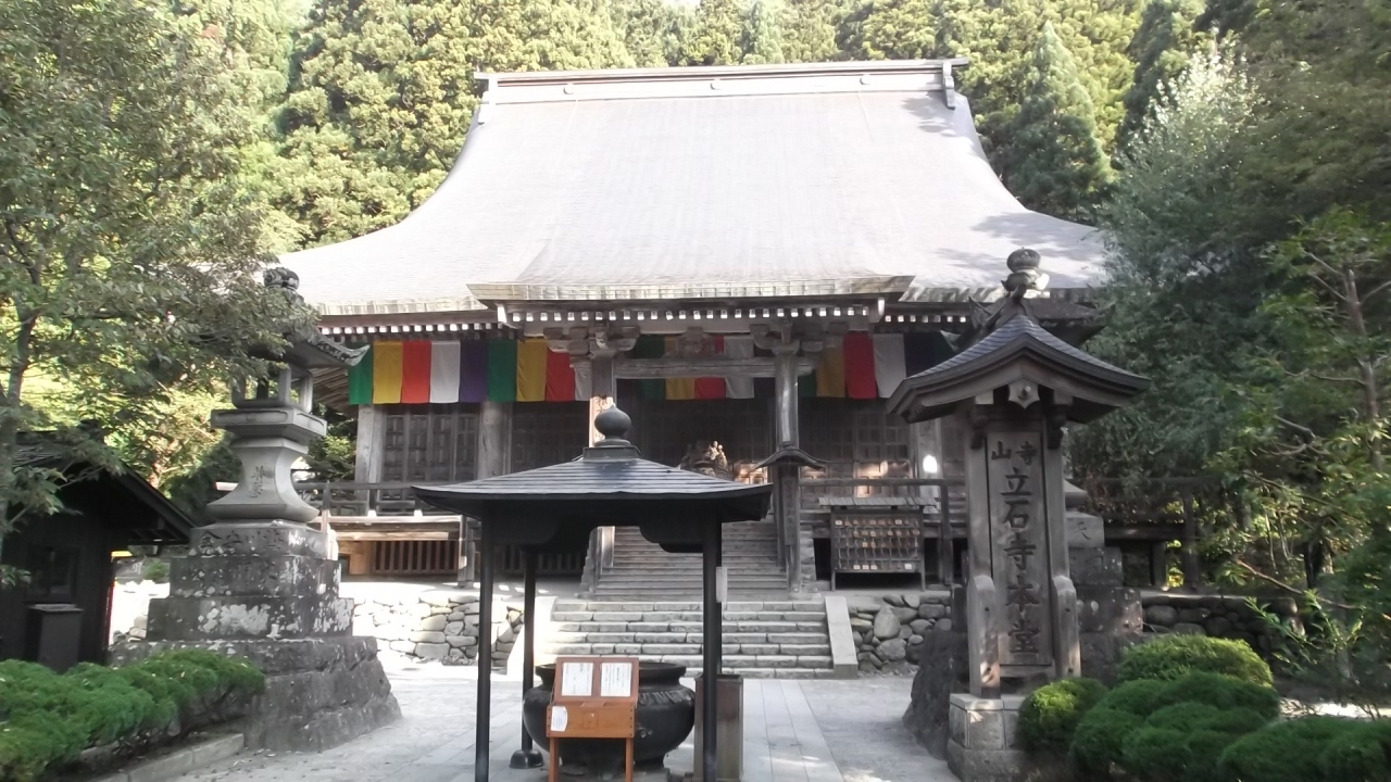 山寺駅から徒歩5分、1015段の登りがメッチャきつい石段。途中には根本中堂・芭蕉像や仁王門、さらに風化した山肌など見どころがいっぱい。奥之院や五大堂(ほぼ山頂)からの絶景が有名なお寺で、中には外国からの観光客もちらほら見られました。