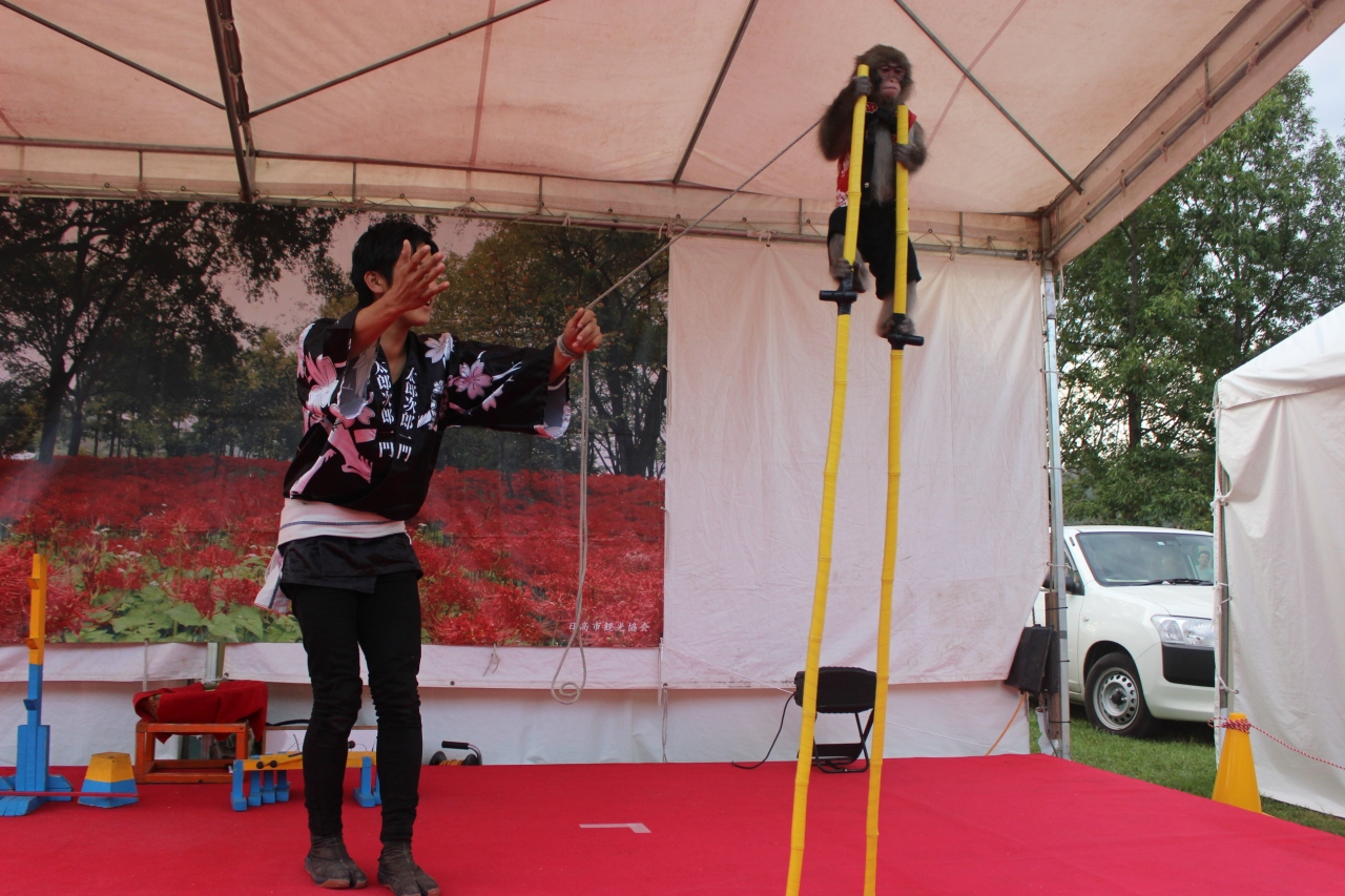 地元の名産の焼き栗や高麗鍋の出店があり、また「日光猿軍団」のパフォマンスもありました。