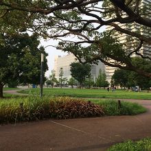 横浜アンパンマンこどもミュージアムの斜め向かい辺りにあるちょっとした公園です。高層マンションが立ち並ぶ麓にある感じでこの辺りに住む方の憩いの場という印象を持ちました。近くには大きなOKマートがあったので、ここで食べ物を調達して公園で飲食するのも良いかと思います。