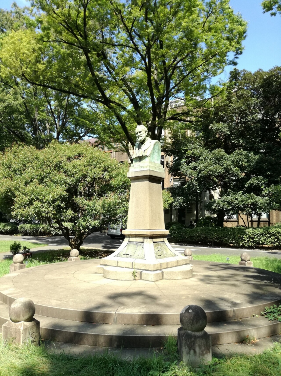 東京大学の本郷キャンパス内にはたくさんの銅像がありますが、この銅像もそのひとつです。チャールズ・ウェストは、工部大学校講師として機械工学、造船学を教え、日本における機械工業の発展と造船と海運の近代化に貢献した人だそうです。優しそうな表情の銅像は、チャールズ・ウェストの人柄が現れているようで、見応えがありました。