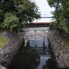 浜離宮恩師庭園の一番のメインである300年の松近くにある水路全体が内堀、となっています。一番の目印、となるのは花畑じゃないかな?景色が素晴らしく、つい前だけ見がちですが、是非足元も見てみて下さい。ちなみに、この写真は300年の松と花畑の間にある橋の上から撮った写真です。