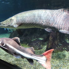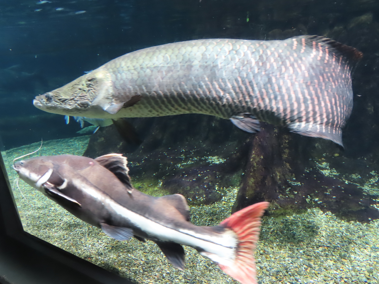 今まで見たことのない大きな魚(ピラルクなど)がいっぱいいる水槽で、娘は大喜び。