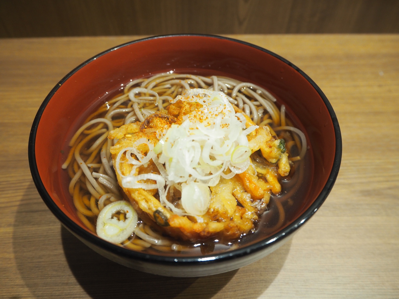 会津若松駅内の駅舎内にある立ち食いそばの店で、待合室の横に店はあります。カウンターのみの店です。列車の待ち時間があり利用しました。注文後1分ほどで出てきました。天ぷらそばを食べましたが、蕎麦は少し細目で腰があり、また出汁は濃い口の醤油ベースでおいしかったです。